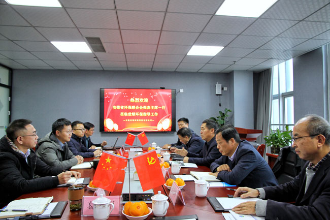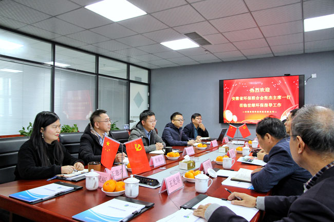 11月20日下午,安徽省環保聯合會主席張杰、常務副主席劉定明、副主席兼秘書長賈宏群等領導一行,蒞臨我公司進行考察交流,我公司董事長查宏偉、總經理石臺等熱情接待并座談。