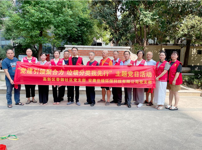 為進一步提高轄區未成年人垃圾分類和環境保護意識,倡導轄區居民綠色低碳生活,積極鼓勵青少年兒童主動參與到垃圾分類的行動中來;打造社企共建品牌,彰顯黨建聚合力,8月11日合肥高新區香御社區黨支部聯合轄區企業安徽世綠環保科技有限公司黨支部開展了“黨建引領聚合力 垃圾分類我先行”主題黨日活動。